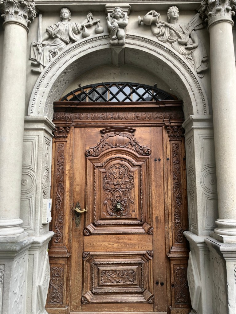 After check in to our hotel, we strolled around old town Luzern crossing one of two wooden bridges over the Reuss River, then into the old Weinmarkt and Kornmarkt, towards city hall. We found the entrance where it’s obvious couples go to get married, as there was confetti all over the ground outside the old door.