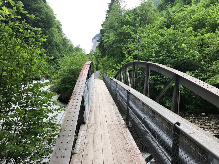We started our hike near the train station in Lauterbrunnen , taking a steep slope down to the river,