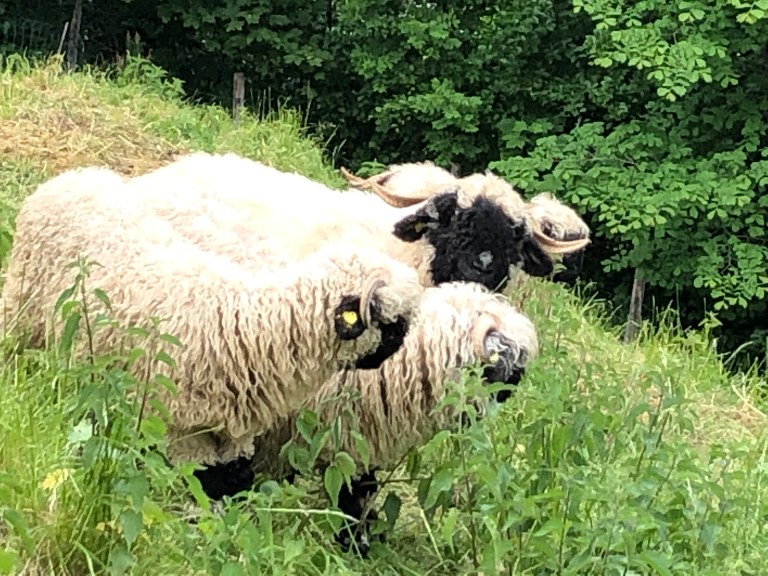Closer to the rail station, we paused to look at the view and were joined by some sheep, grazing nearby. I think if there had not been a fence, they would have come right up to us. The goats weren’t so sure about us and kept their distance.