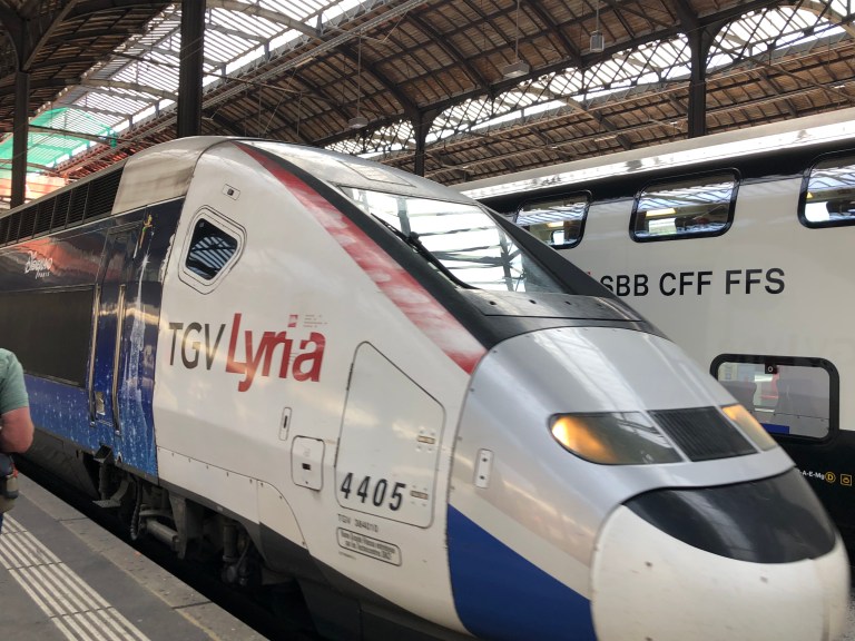 Leaving Basel, we’re in France within minutes. On the (French) TGV Lyria, no WiFi 😐