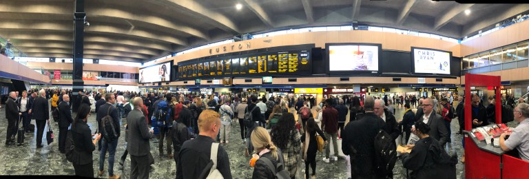 We wait in the Euston station for the departure platform to be posted on the giant announcement board, like everyone else waiting for their trains.