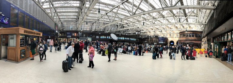 We arrived on time in Glasgow; Glasgow Central Station is a large station.