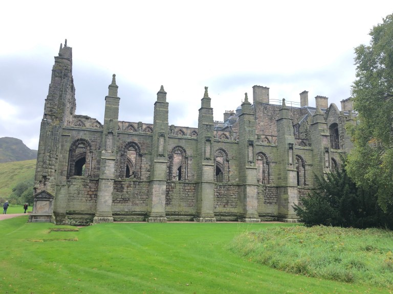 It’s a pretty extensive tour, with at least fifteen rooms included. With the audio guide, the history and the people begin to tell the story of the royals, their intrigue and the linkage between England and Scotland. The palace itself dates from the 16th century, though the ruined Abbey that adjoins it dates from the 12th century and has a rich history of its own. Robert the Bruce held a parliament at the abbey in 1326, and by 1329 it may already have been in use as a royal residence. In 1370, David II became the first of several Kings of Scots to be buried at Holyrood. James II of Scotland was born at Holyroodhouse and Mary Queen of Scots‘ son, James VI (of Scotland) and I (of England, was born there.