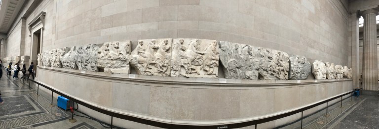 The Parthenon room is filled with pieces of sculptures taken from the Parthenon. Built nearly 2,500 years ago as a temple dedicated to the Greek goddess Athena, it was for a thousand years the church of the Virgin Mary of the Athenians, then a mosque, and finally an archaeological ruin. The building was altered and the sculptures much damaged over the course of the centuries. The first major loss occurred around AD 500 when the Parthenon was converted into a church. When the city was under siege by the Venetians in 1687, the Parthenon itself was used as a gunpowder store. A huge explosion blew the roof off and destroyed a large portion of the remaining sculptures. The building has been a ruin ever since. By 1800 only about half of the original sculptural decoration remained. Between 1801 and 1805 Lord Elgin, the British ambassador to the Ottoman Empire, acting with the full knowledge and permission of the Ottoman authorities, removed about half of the remaining sculptures. There’s an ongoing “discussion” between the Greek government and the British Museum about Greece’s desire to repatriate these sculptures.