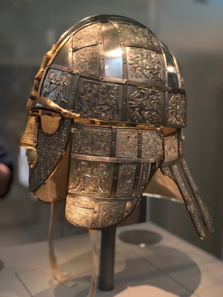 When the initial archaeological excavation was done, the helmet, buried with a 27 meter long ship was found in 500 fragments. The helmet has been reconstructed twice, but the process is like putting together a jigsaw puzzle without all the pieces and without knowing what the final picture is supposed to look like. It took eighteen months to do the second reconstruction.