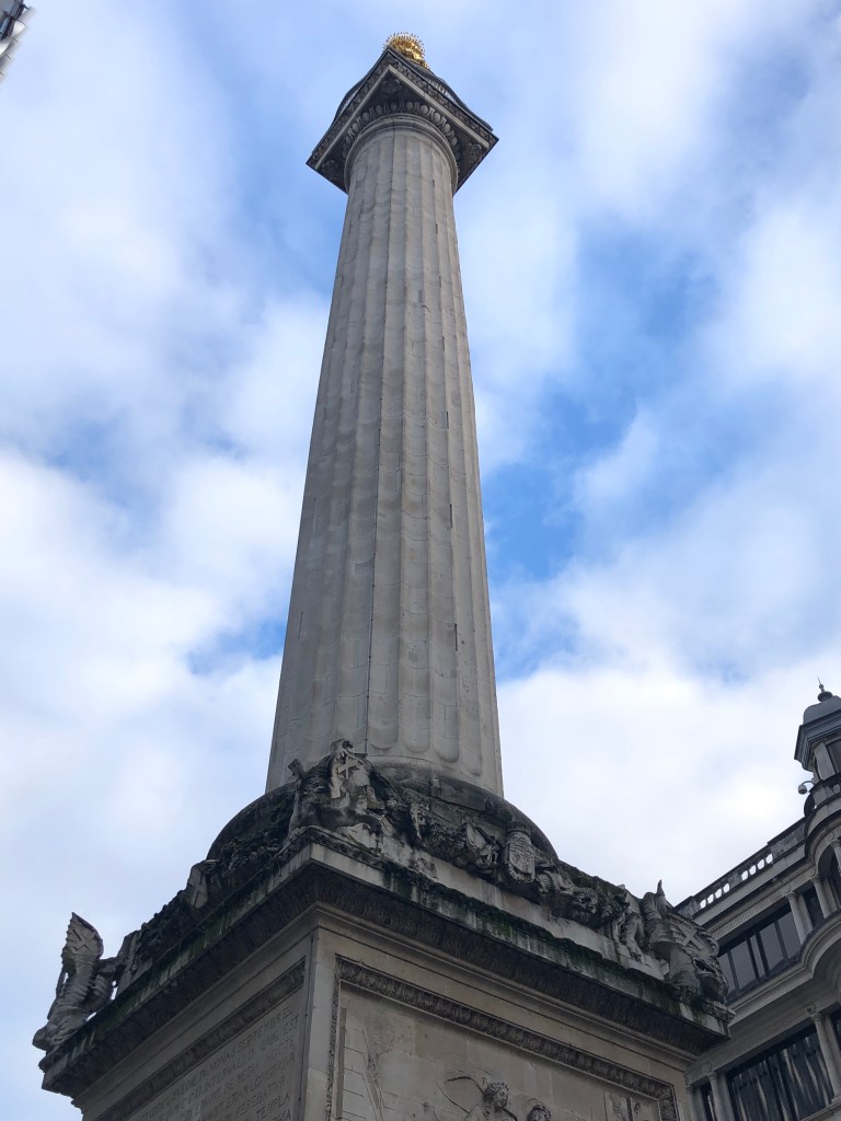 Also on the way back (no rain now) we passed the Monument to the Great Fire of London.