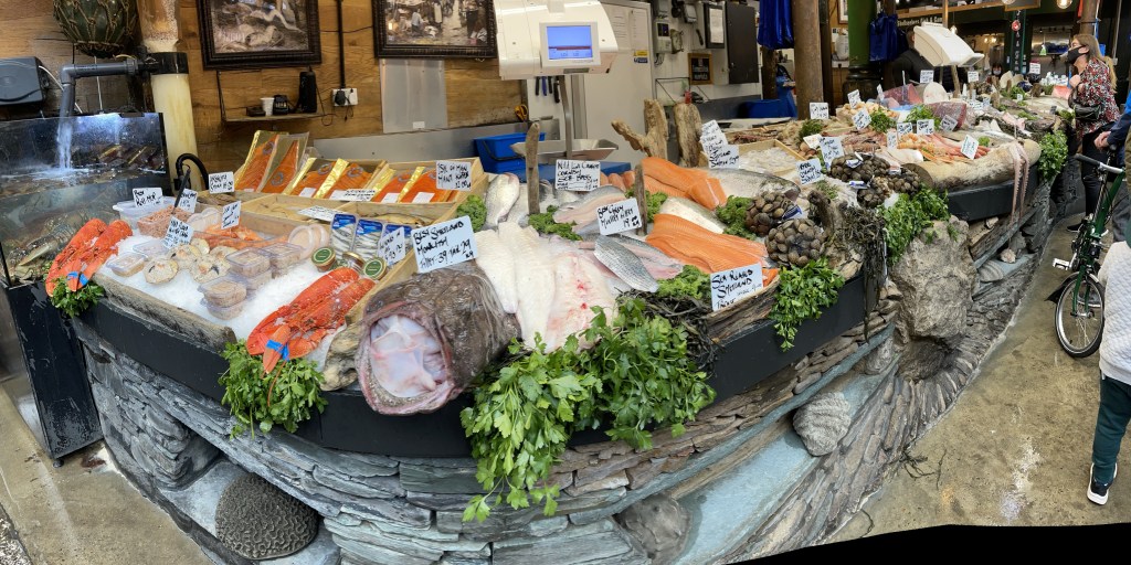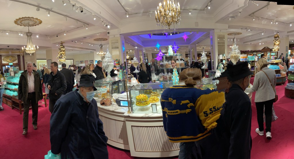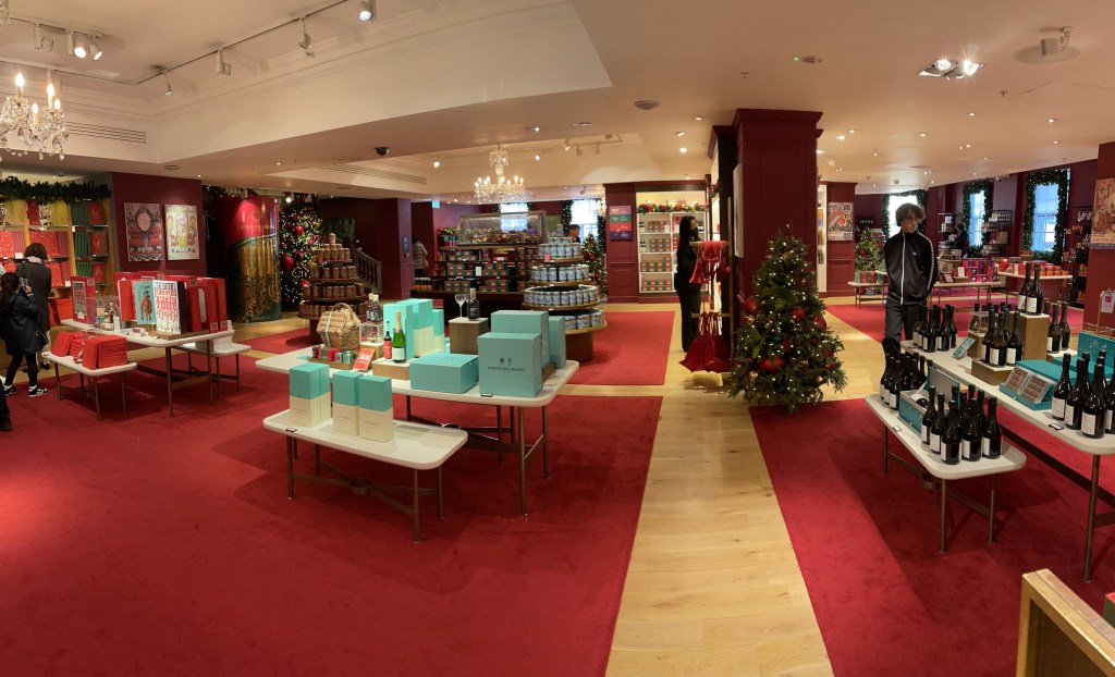 One last stop for the day was Fortnum & Mason on Piccadilly Street. While famous for their afternoon tea, we were simply shopping. They’ve already started decorating for Christmas (their main display windows are not yet ready) and though it is Thursday in late October 2021, the store was busy with people shopping for Christmas.