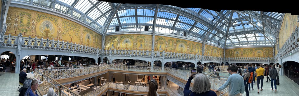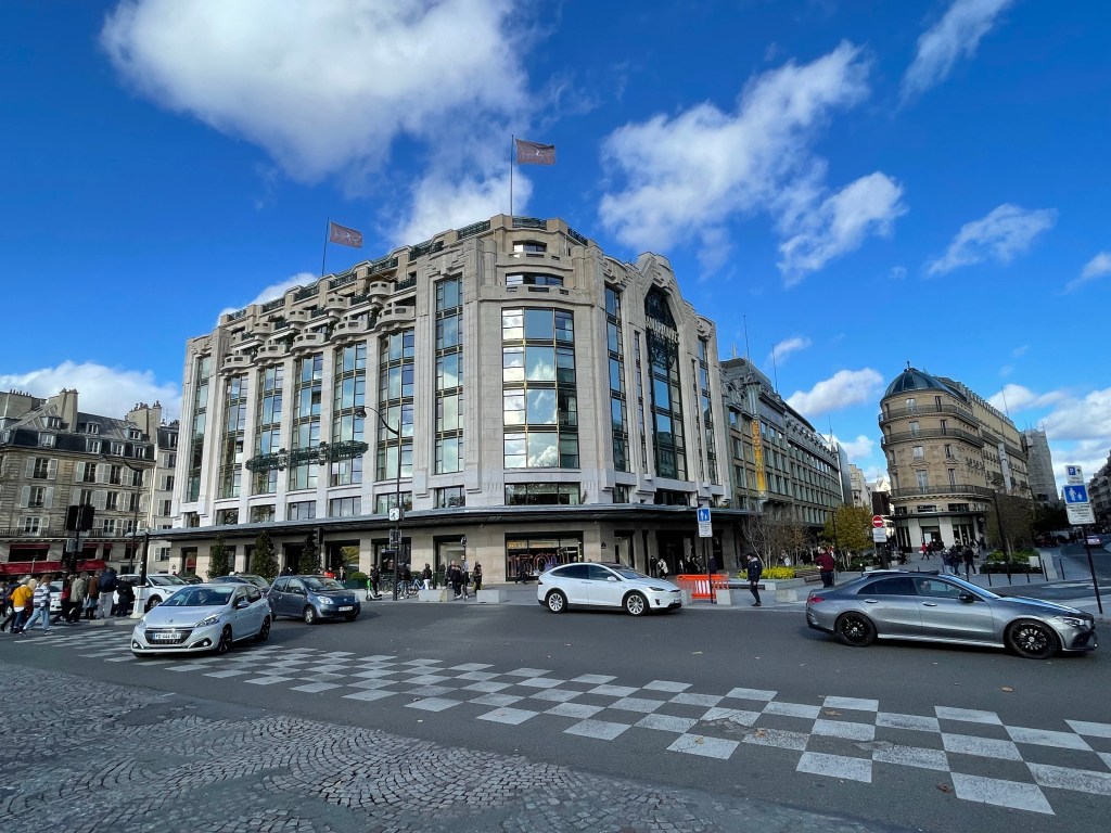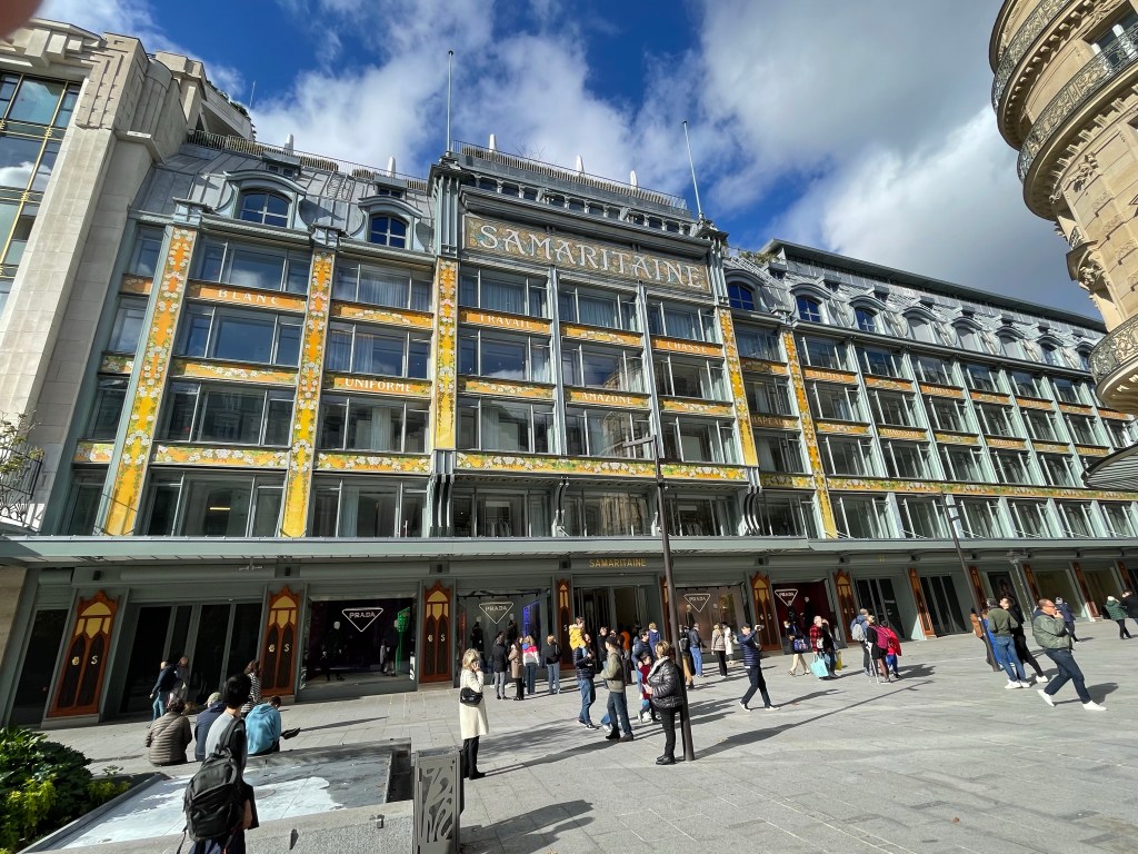 We’d taken the Metro out to see the recently reopened Samaritaine, a large department store with a long history in Paris. It became a bit of an anachronism in retailing though, not modernizing. When we last shopped there many years ago, you would take a cahier (notebook) from department to department for the things you bought until you were ready to visit the “la caissière” (cashier). It was a bit quaint, but the service was good and it was an enjoyable experience. But sadly, Samaritaine fell on hard times and closed in 2005 after losing money for decades. In the intervening years, when we’d go by, the signage said something about meeting safety codes, but the store never seemed like it was on the road to reopening and sat there shuttered and forlorn .