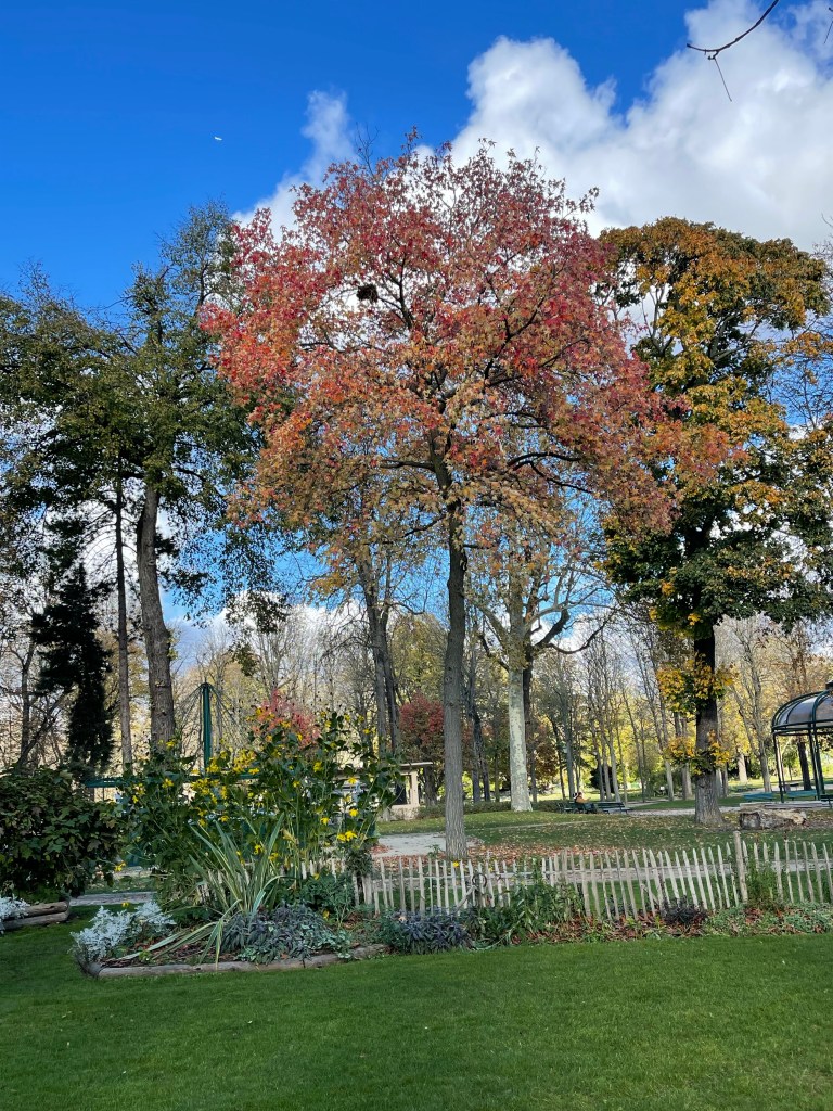 From this Metro, it’s just a few stops until we reach the Metro stop La Muette, from which we walk to find the museum. While standing at a corner deciding whether to turn or walk straight ahead, a local citizen asked us if we were looking for the museum and gave us more a direct route (glad I speak enough French to have understood). The museum is located next to the small park Jardin du Ranelagh. Autumn is much more evident in the trees here than it appeared when we were in London. It’s not a large park, but there are a number of children out playing, riding scooters , as the children’s merry go round has been packed up for the winter.