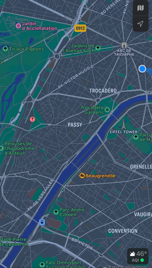 Today we’re off to see the Musee Marmottan Monet, located in a more suburban area of Paris, but still only about 20 minutes away by Metro. The weather today looks more promising than yesterday with mostly blue skies and some clouds , but I’m taking an umbrella!