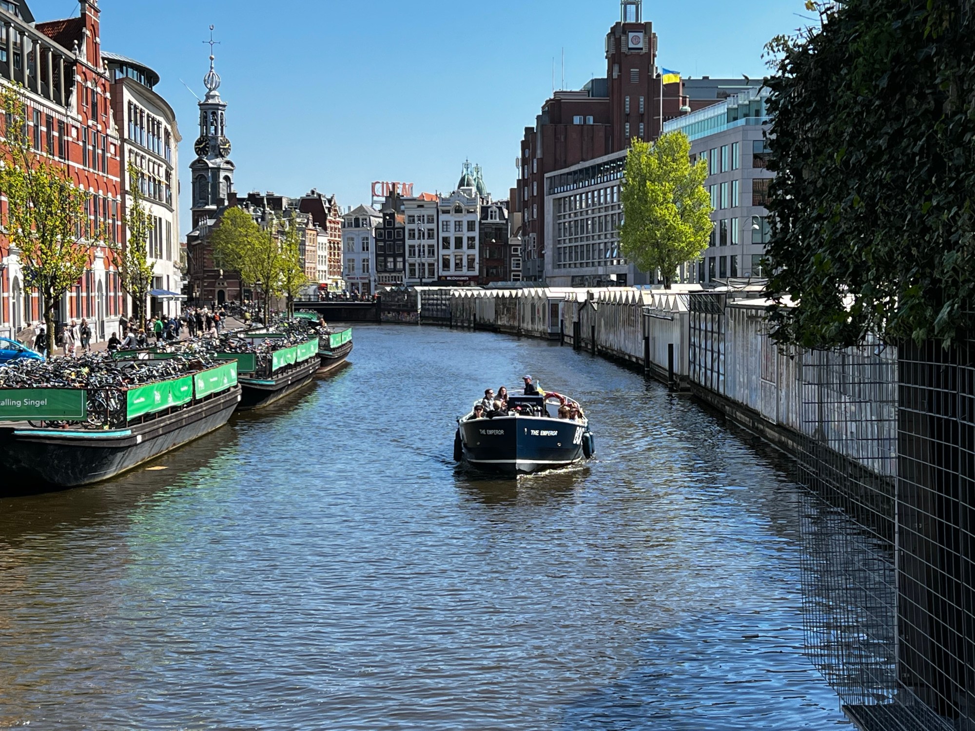 It’s a beautiful, almost cloudless day here and being Friday afternoon, starting to get crowded. Cafes are predictably busy with people sitting at tables outside enjoying the sun. We shared a lovely warm Stroopwafle and a latte at a small café near the Singel canal.