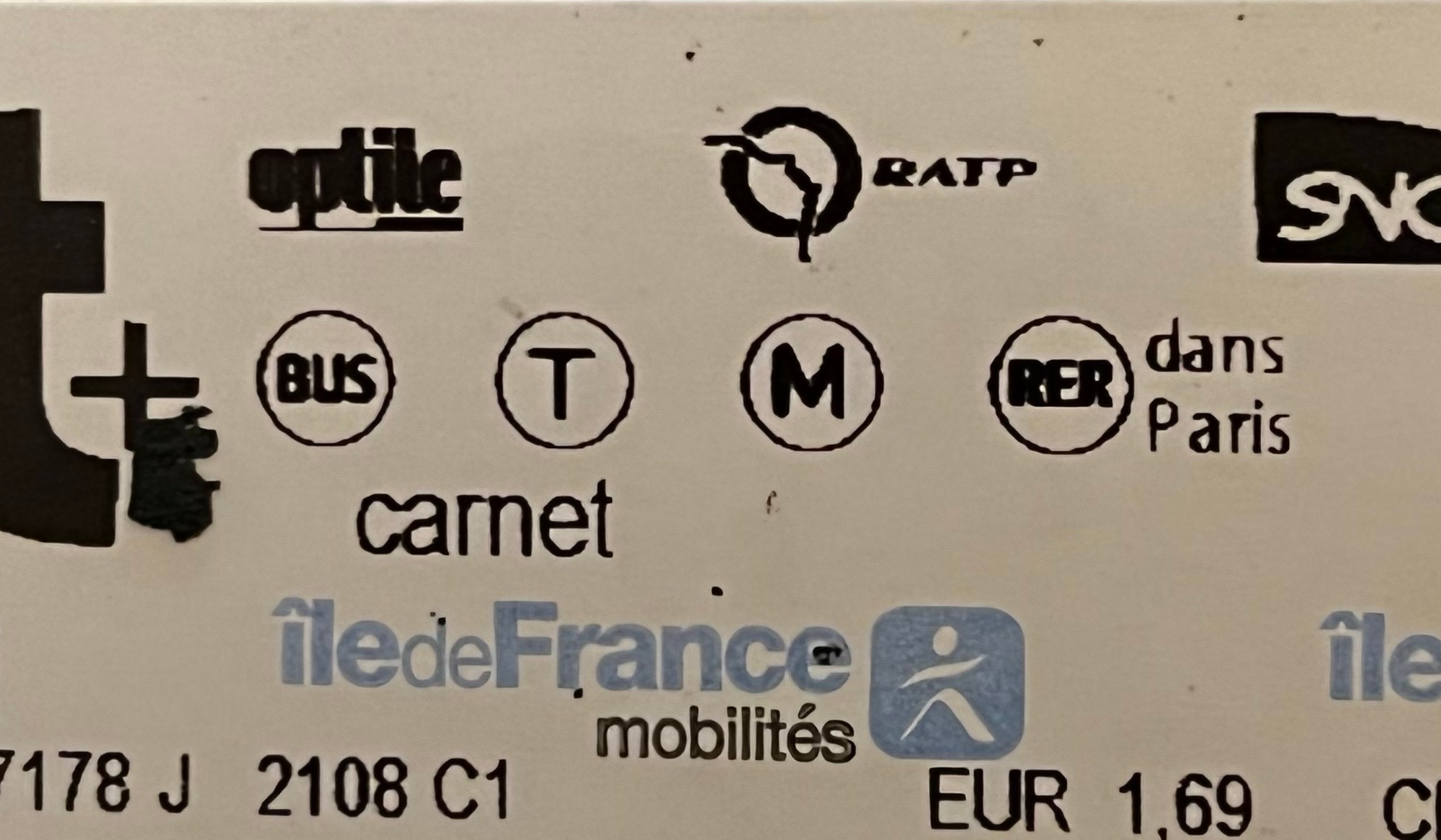 Our first full day in Paris (since we spent the bulk of yesterday traveling from Düsseldorf to Paris) and one of the first things we needed to do was explore the options for the changes in buying tickets for the Metro (subway system). For all of time we’ve spent traveling to and around Paris, we’ve bought carnets, “books” of ten tickets to be used in the Metro (or bus). Each ticket gave one person as many rides/connections necessary to get from your departure point to your end point as long as you don’t exit the network. While there have been/are other options for natives (there was a carte orange, then a Navigo Pass day/week/month/year and other varieties of passes), for decades, for travelers, the main option was usually buying individual tickets or carnets. I had three tickets left over from the last trip, but that would only get us both from Gare du Nord to near our hotel, once.