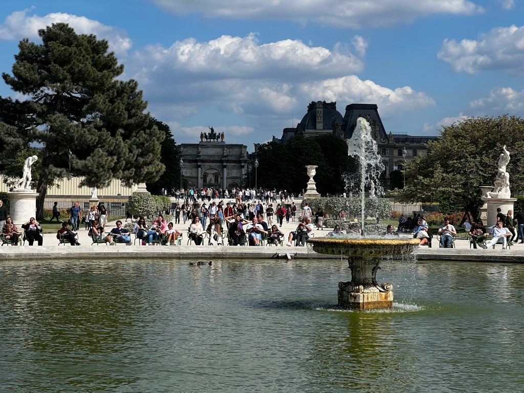 On our way over there, we stopped at Lalique on rue Royale to assess what we couldn’t buy. The temp got up to about 70°F, but felt hotter in the full sun, so we were grateful to find a shady place to sit and enjoy our treats. Right at the entry to the gardens are tombs of some of the patriots (some soldiers, some firefighters ) who died defending Paris when it was being liberated in WWII and they’d been decorated with flowers.