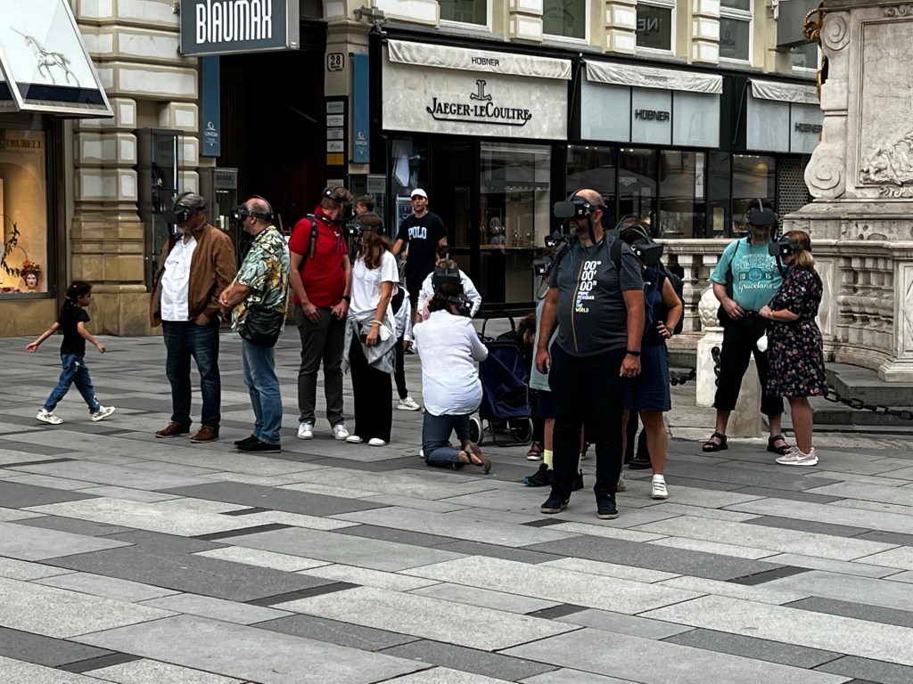 Walking along die Graben , a main pedestrian shopping area (near St. Stephen’s cathedral) and the Kartner Straße, we spot some virtual tourists.