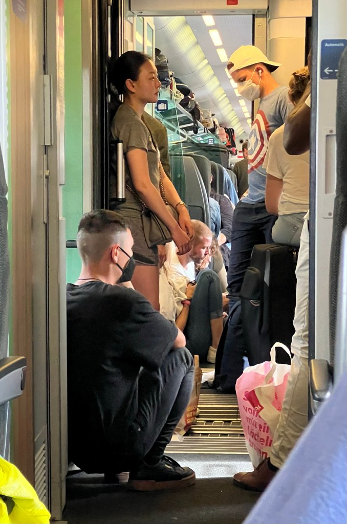 Our track is just six or so platforms down from us and the train is already here, so we found our car and our assigned seats. The train is (more than) full.