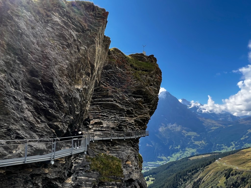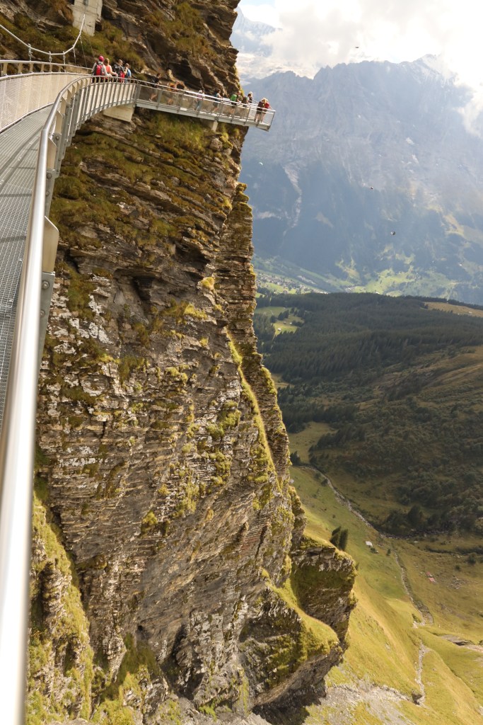 1. So, when you go up to the Cliff Walk from Grindelwald, you take a 2 stage cable car lift up. Once you exit at the top, you can go into the restaurant rather than walking around the Cliff Walk. The walking platform is very steady; I don’t recall it being “shaky” at all. It’s steel, held with support cables and beams, but you are out there on the walkway and nothing below you. Hope you can go, it’s really a beautiful experience, especially if the hangliders are out.