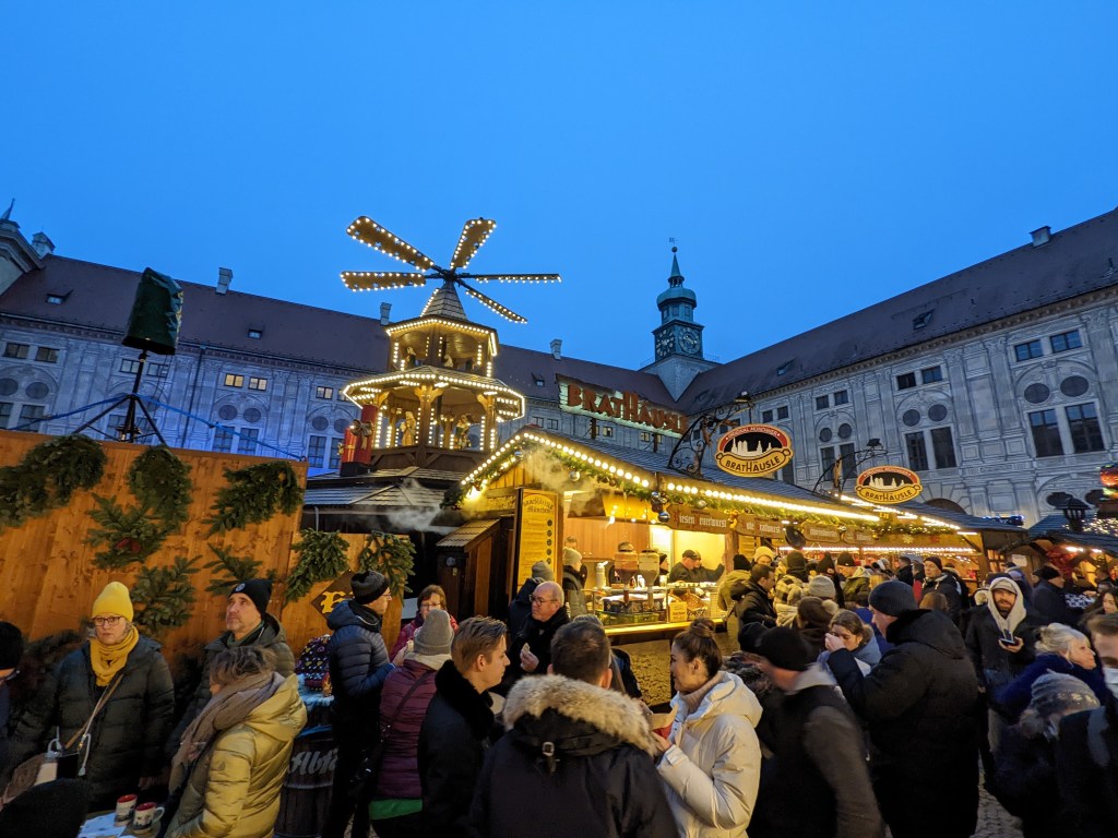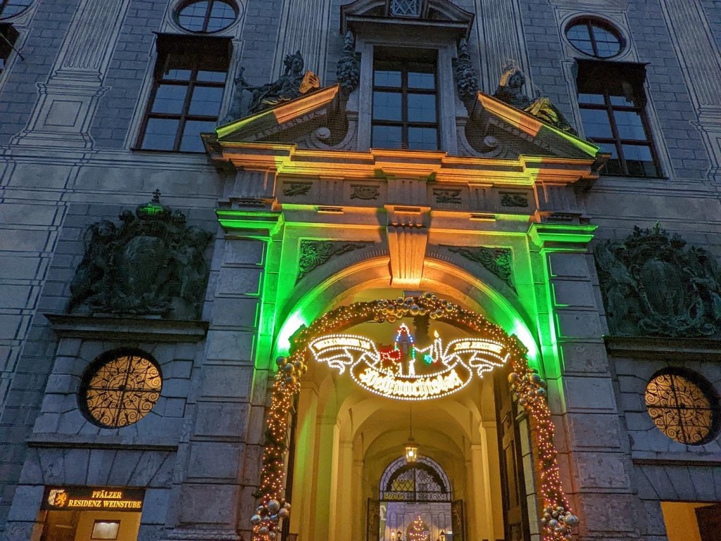 Leaving the hotel mid afternoon, we took largely the same return route , but now to the Residenz, the former winter palace of the Wittlesbachs, Kings of Bavaria. There is a Christmas market being held in one of the courtyards; being a royal palace, it’s not a small courtyard.