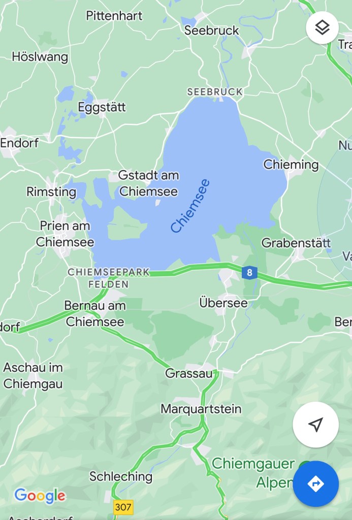 Our next stop in this (almost) whistle stop Christmas markets tour is Munich. We left Salzburg about 10am and the train to Munich is about 1 hr 40 minutes through mostly foggy scenery. One of the very brief stops we make is at Prien am Chiemsee, a small village on the very large Chiemsee (see=lake). The lake has an island and King Ludwig built one of his palaces (Herrenchiemsee) on this island (Herreninsel “Herren”= Men’s, “Insel”= island). We visited the palace many, many years ago, taking a small ferry across the lake.