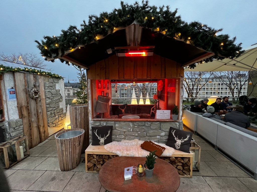 We found that Oberpollinger has a very nice restaurant on the top floor and it was refreshing to see they had an entire department dedicated to Christmas ornaments. It seems so many US stores have nearly eliminated them. The store had a pop-up bar on an outdoor terrace and they had small chalets (by reservation) with seating inside; outside (no reservations), they had benches and tables.