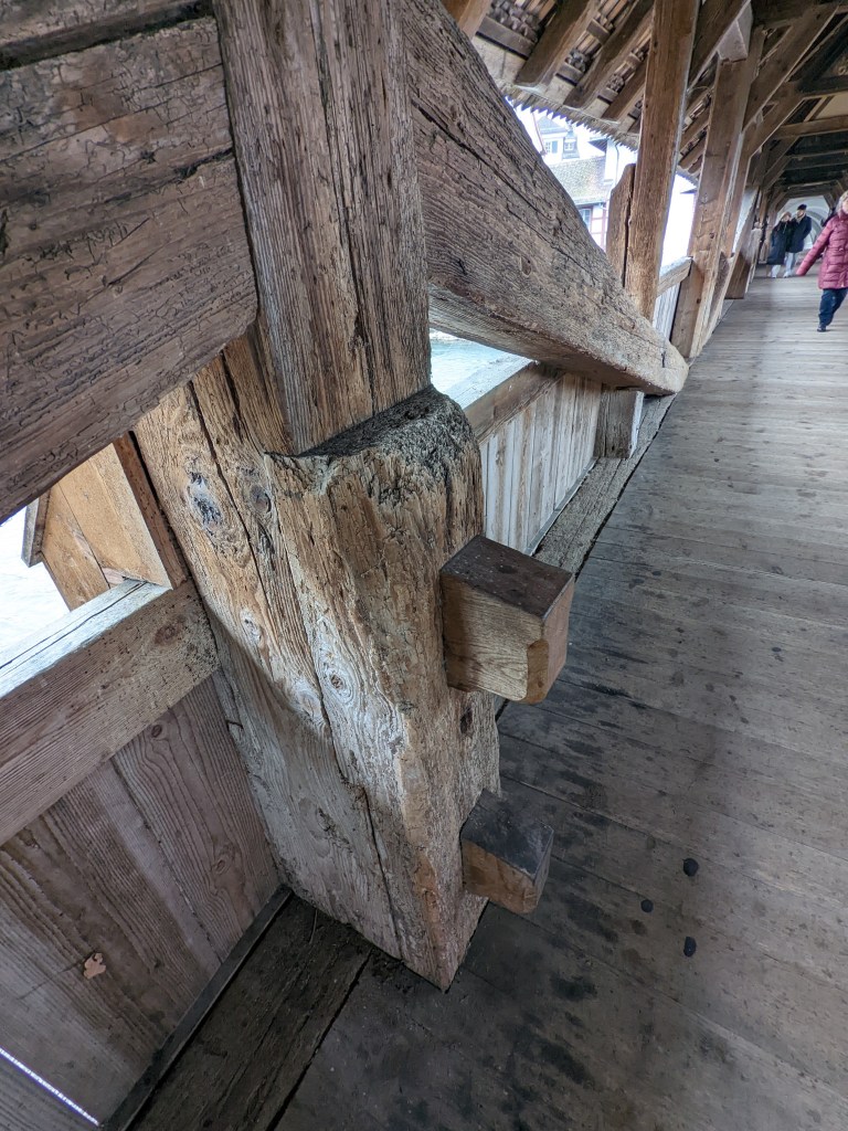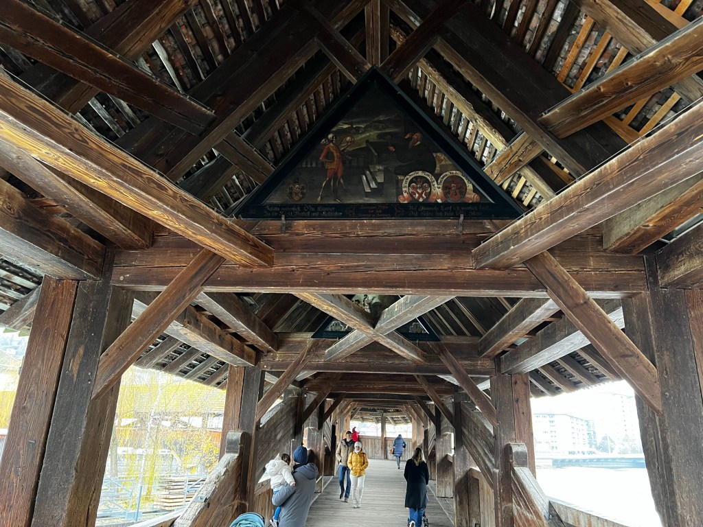 Following the street down to the Reuss river, there are two famous wooden bridges – The Spreuerbrucke and the Kapellebrucke (Chapel) bridge.