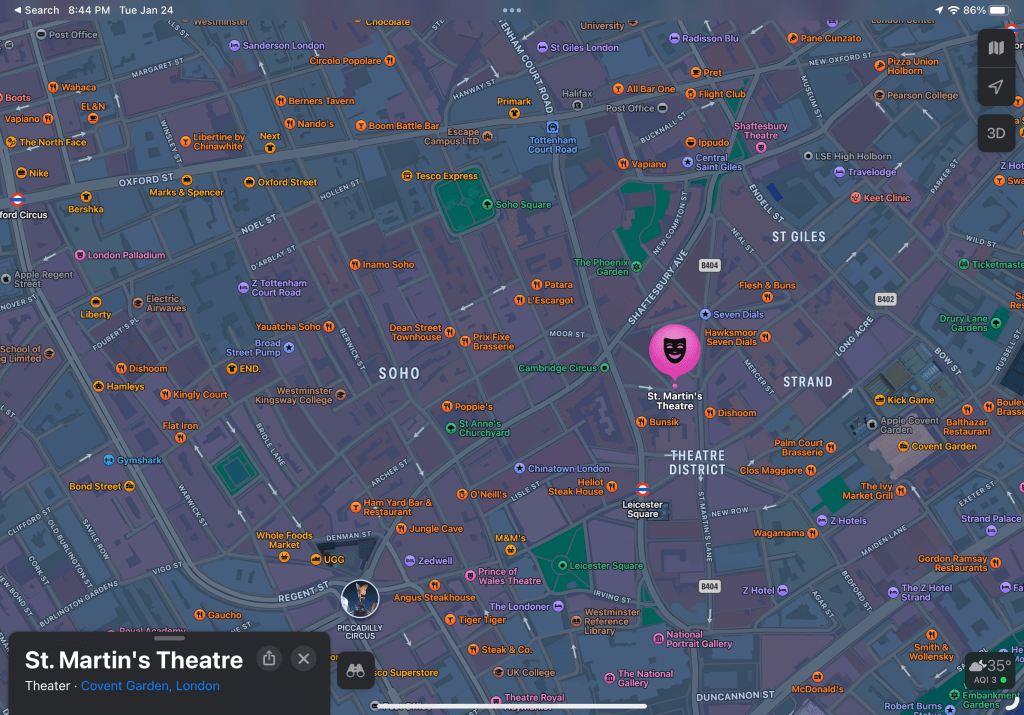 Walking through the West End really let’s you appreciate how many theaters there are in a relatively small area, along with pubs and restaurants. We walked to Cambridge Circus, then up Charing Cross Road to the Tottenham Underground. Lots of people on the streets and on the Tube, but once on the Central line, not too long a ride back to the Marble Arch.
