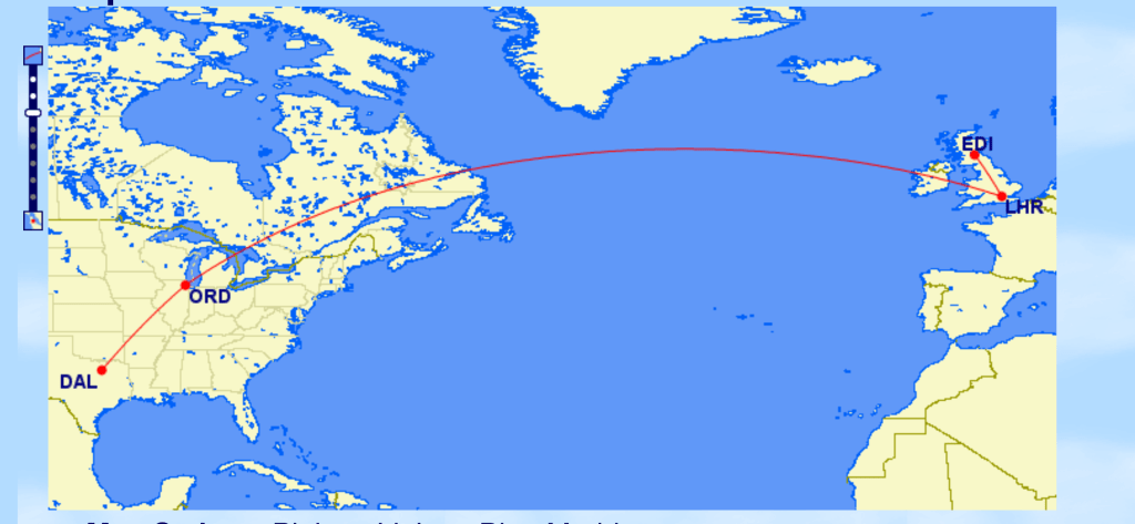 Today we started our journey to Edinburgh, which takes us from DFW to Chicago to London, where we transit to Edinburgh. It’s always a bit worrying when you have connections, anything can go wrong to bork up the whole journey. Today’s adventure was an airport ground stop in Dallas due to severe weather. We had plenty of connection time in Chicago as long as the flight getting us there wasn’t cancelled; it was an hour+ late leaving.