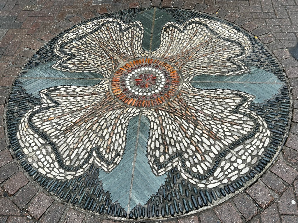 We took the tram into town for £18 (two people), buying tickets on the tram platform. Well before the city, we pass by a number of low-rise (4 story) office parks and some retail parks (outlets?). It’s still early spring here, but many trees are leafed out, including some cherry trees and dogwood. 49° this morning.
