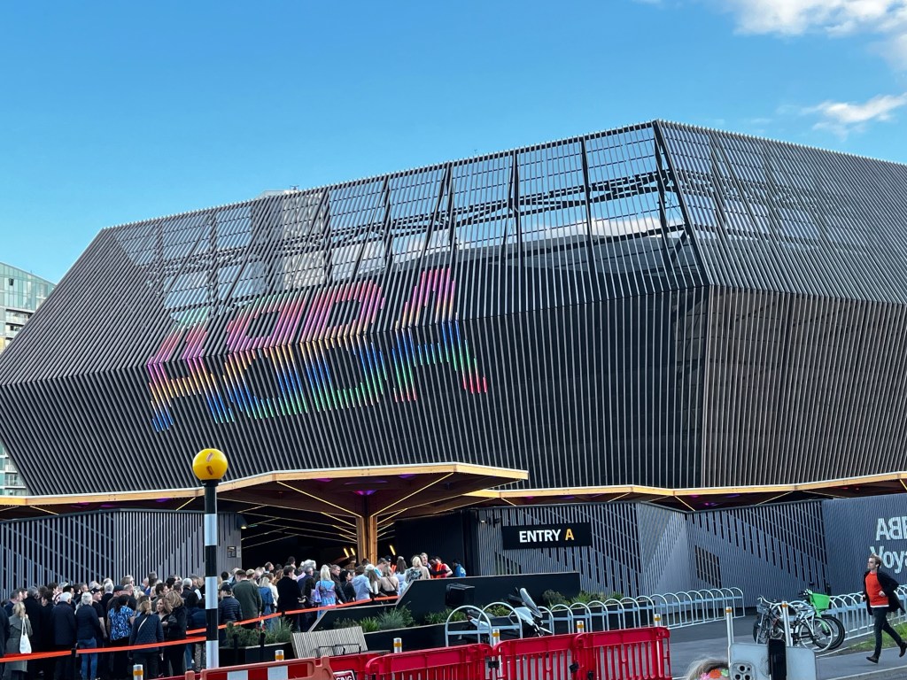 It’s a virtual concert. There is a live band off to stage left, but the four members of ABBA appear virtually, as the age they were (presumably) at their peak in 1977. The four band members, who are now in their seventies, spent many hours performing for the motion-capture cameras to appear as lifelike as possible. It’s not a large audience, with around 1650 seats and 1350 standing room (the Dance Floor), so around 3,000 in the audience, and it was sold out. The theatre darkens, your eyes adjust, the willing suspension of disbelief kicks in, and they begin to feel like living, breathing musicians, rather than the product of 160 motion capture cameras and one billion computing hours by Industrial Light & Magic. The ABBA band members wore motion-capture suits as part of the development process and were filmed as they performed a 22-song set over the course of five weeks. Some 160 cameras were used, with graphics later added by Industrial Light & Magic. The choreography is based on the band members’ real movements, but captured from younger body doubles. 1,000 animators worked on digitising footage to create the avatars. There are almost 300 surround sound speakers in the 3,000-capacity venue. And the whole venture cost around £140 million ($175m) to produce.