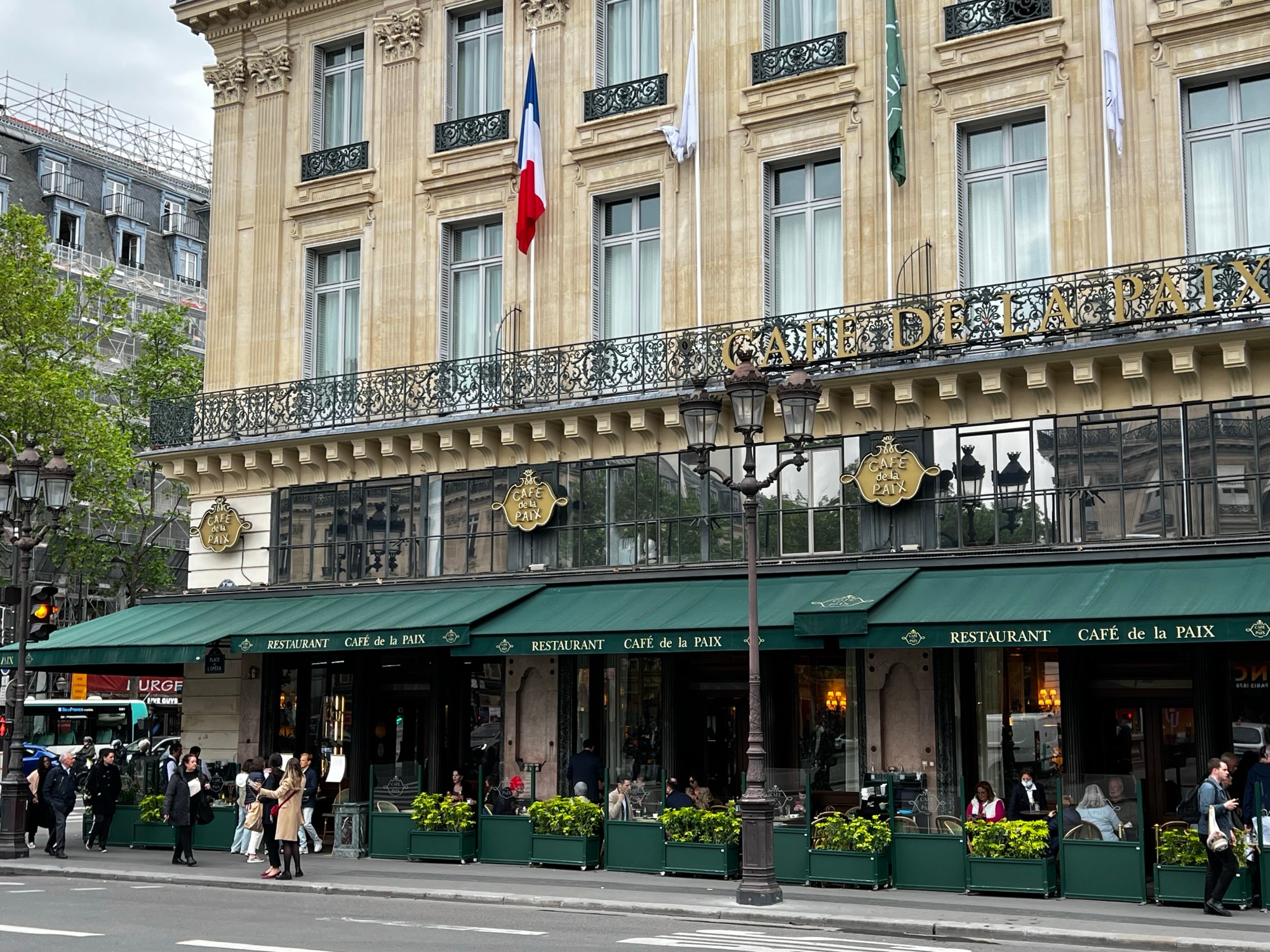 A lifetime ago, I worked for the US subsidiary of a huge French engineering and construction company. In that role, I worked with a number of the French management of the division that bought our company and developed a long term friendship with the President of that division. Even when our little company was sold and we each went our very separate directions, we kept in touch. Over the years, we’d sometimes have the chance to see each other when our travels brought us to Europe and intersected with his. We even attended the wedding of one of his daughters, in a small village in France; what an experience that was! We hadn’t seen each other in ten years. This trip we were able to have dinner together and catch up in a way that email doesn’t allow. Café de la Paix was a real treat for both the company and the food (yes, I had escargot and really enjoyed them).