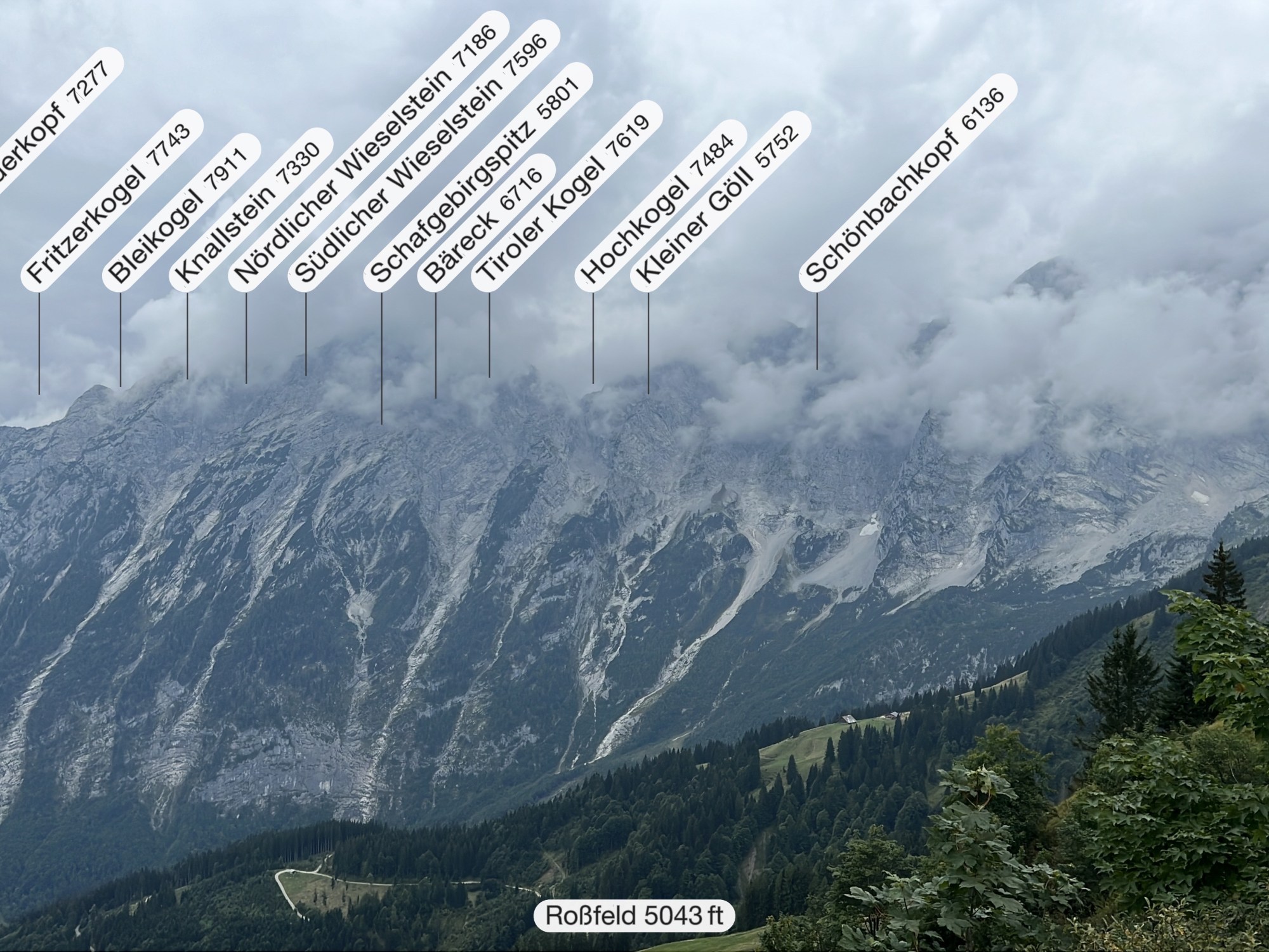 Use the iOS Peak Finder app, I can identify many of the names and elevations of the higher mountains surrounding us.