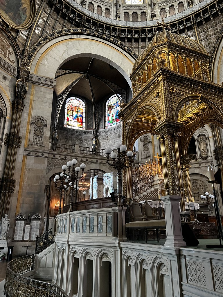 Just a few blocks down the street is Église Saint-Augustin. It’s centered on the square Saint-Augustin, built between 1860 and 1871 by the Paris city chief architect Victor Baltard. In the 1850s and 1860s Napoleon III carried out a massive reconstruction of the center of Paris, which was carried out by Georges-Eugène Haussmann. Wide boulevards were built to cut through the overcrowded medieval city, with monumental new buildings at the meeting points of the wide new boulevards. Saint-Augustin was intended to be the anchor of Boulevard Malesherbes, balancing The Church of La Madeleine at the other end. The size and design of the church was inspired by Saint Paul’s and other great churches of London, where Napoleon III had lived in exile before becoming President of France and then Emperor.