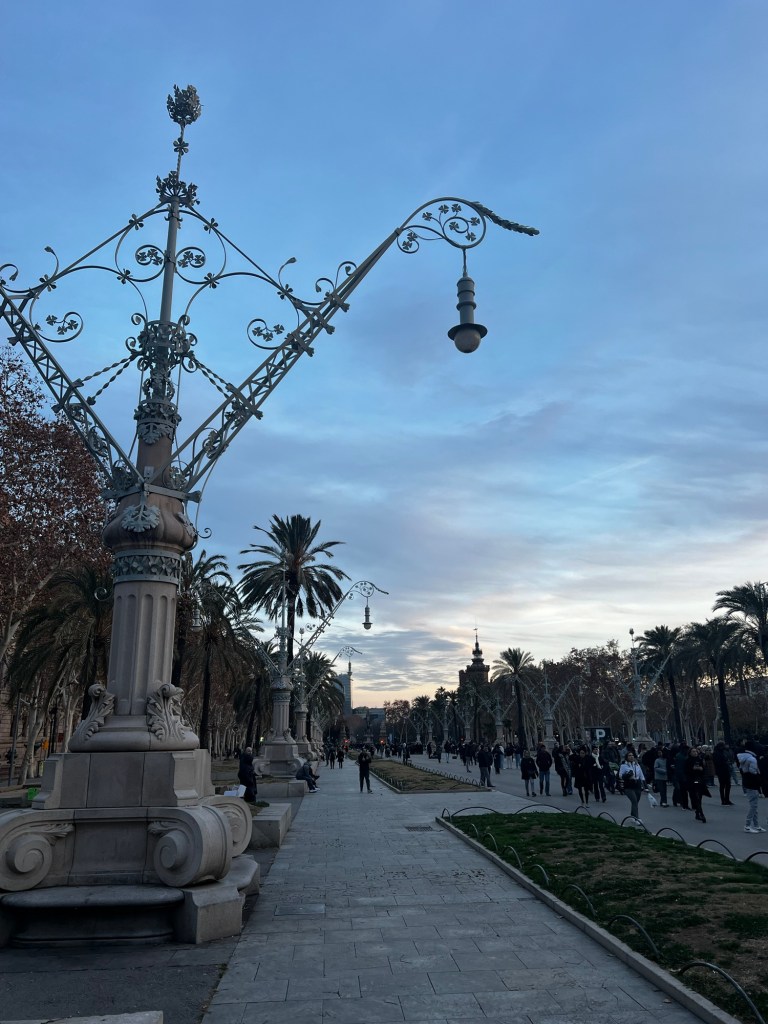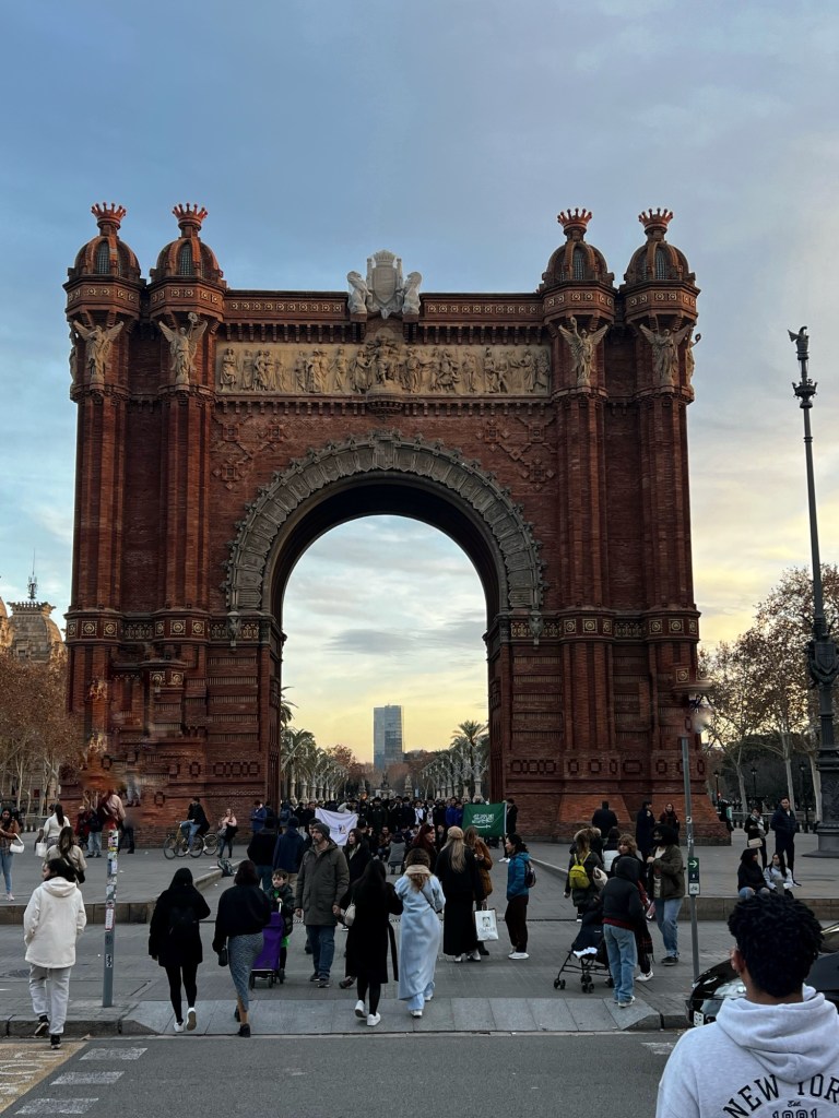 We took the metro back out to the Barri Gòtic area in search of …Churros and hot chocolate. But took in some sights along the way. At the Passieg de Lluis Companys the is the Arc de Triomf. Though the name is similar to the one in Paris, the purpose and construction are completely different. The Arc formed the main access gate for the 1888 Barcelona World Fair. The arch crosses over the wide central promenade of the Passeig de Lluís Companys, leading to the Ciutadella Park that now occupies the site of the world fair.