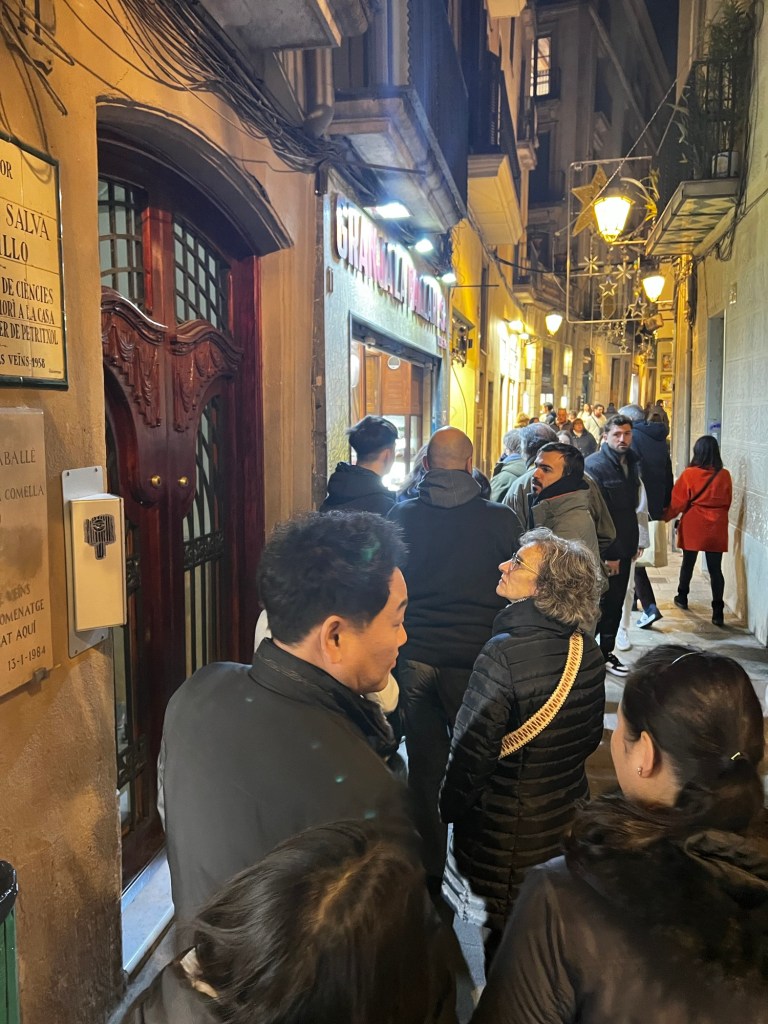 Finally, we spot our restaurant., La Pallarersa Xocolateria Xurreria. There’s a line, but not too long. They cram a lot of people into this restaurant.