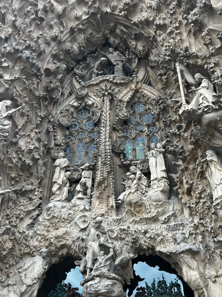 The level of detail and symbolism is overwhelming and unlike other churches, there is no one central tower or element, with the sculptures telling the life story of Jesus. Gaudí wanted the church to be the Bible made in stone- the church was built in a very poor area of Barcelona, where most inhabitants were illiterate, so the visualization of Jesus’ life and messages of love and hope were the way Gaudí wanted to tell the story. The three sides of the church – Nativity (birth of Jesus) , Passion (crucifixion and ascension into heaven). and the Glory (Jesus’ teachings) tell that story.