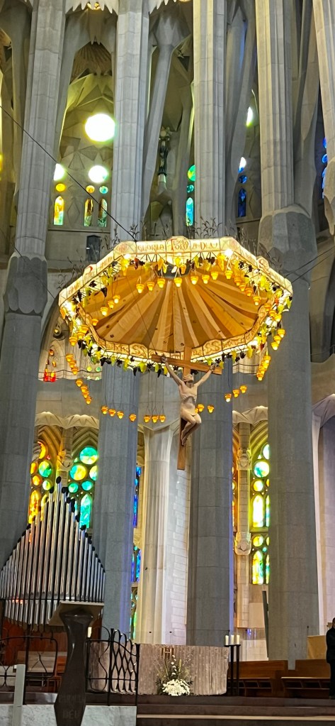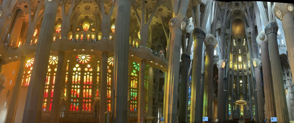 When we checked into our first hotel on arriving in Barcelona, we could see La Sagrada Familia (the Holy Family) in the distance, and even at that distance, understand the imposing size of the structure. Today we visited La Sagrada and spent about 4 hours there with both the guided tour and exploring on our own.