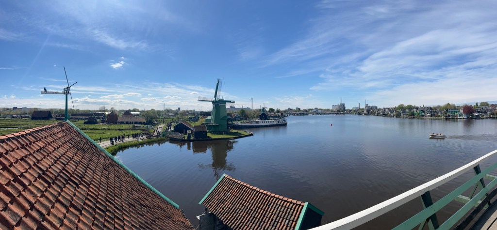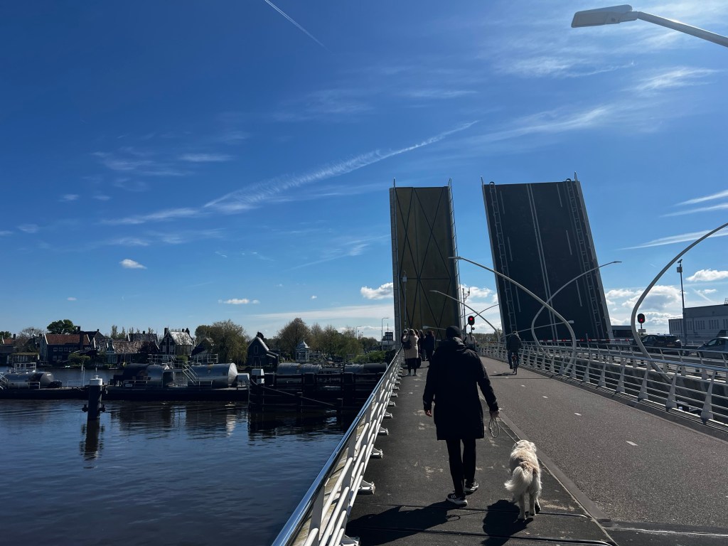 It’s about a 15 minute walk from the train station station directly into the heart of the city and over a drawbridge that connects to the other side of the Zaan River where the windmills, museums snd shops are located. There was a ship coming down the river and we watched and waited as the drawbridge was raised for the ship to pass through.