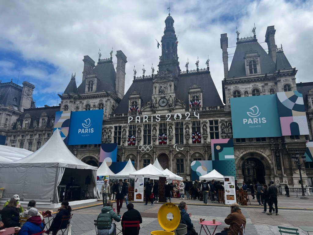 Prior to reaching Nôtre-Dame we walked past Hôtel de Ville (City Hall) , where there was a Mayfest still going on and the city is getting ready for the launch of the Olympics.