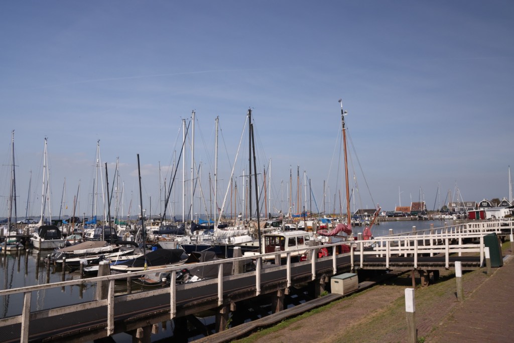We walked out to the edge of the dike facing the Markermeer (a shallow lake once part of the Zuiderzee), and there are small strips of sand some people are clinging to as a beach. From here, you can gaze across the lake to Volendam, a much larger city to which we’ll take a ferry.