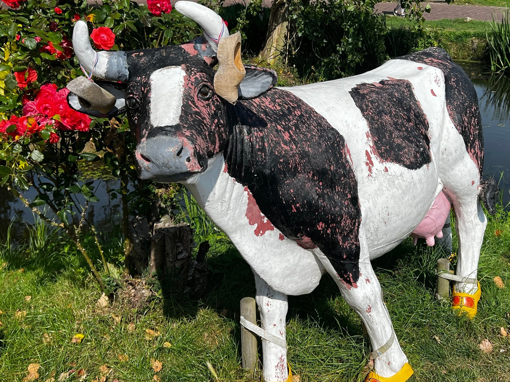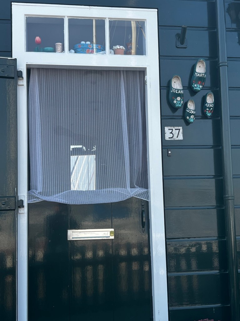 Today we took the GVB (Metro) to from Amsterdam Centraal Station to the Noord station and then a bus to Marken. The bus took about 30 minutes through a predictably very flat countryside with grazing cattle and horses, some crops and wind turbines . I imagine that all of the land we saw along the way was reclaimed from the sea. Marken was an island only accessible by boat, until 1959 when the causeway that we took to connect the island to the mainland, was built. It doesn’t have many residents (definitely more tourists) and some of the cottages look like they might be seasonal.
