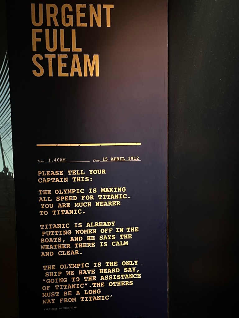 Though it was 1912, the ship had the most modern communication equipment at the time, the Marconigram (wireless telegraph) which could communicate up to 1000 miles away. This was a huge novelty for the passengers, who could inform their friends and family about their voyage.