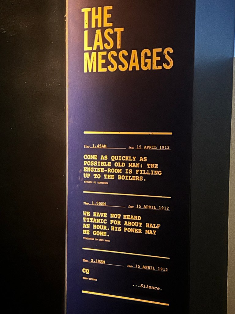 The museum exhibits are multimedia, focused on Belfast as a ship building and flax spinning center, the design and construction ( YouTube) of the luxury liner. The last two floors as you wind your way down are about the stories of the sinking on April 15, 1912, those lost, the survivors, their personal stories and the rediscovery of the wreckage by Robert Ballard in 1985. There was no inclusion of the story of those lost in 2024 in an exploratory mini sub (Titan) , adding to the tragedy of the Titanic’s history.