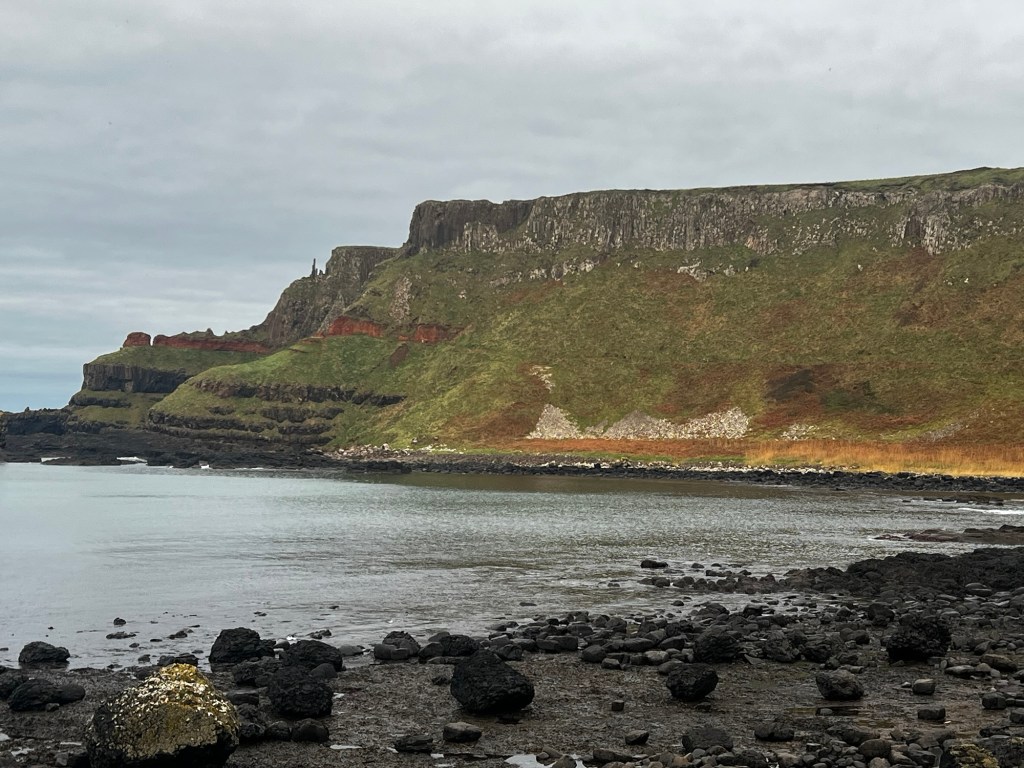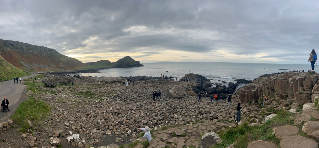 We decided to take a bus tour of an area of Northern Ireland that we last visited when driving a rental car in 2011. At that time, my family thought I was going to kill them driving Ireland’s roads – winding (somewhat) narrow country roads with high hedges. On that trip, especially in the Republic of Ireland , when rounding a blind curve, we encountered sheep crossing the road, tour buses, 18 wheelers and a gypsy caravan. I opted to take a bus tour with all the compromises that entails – more limited time at each point of interest and some points of interest eliminated. Of course, this is both the result of compressing a multi-day trip into 8 hours and shorter daylight (gets dark at 4:30 pm this time of year).