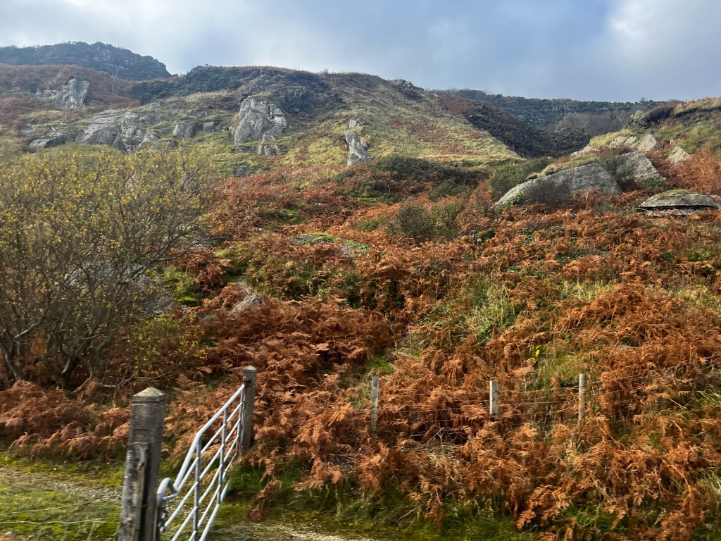 The landscape is rugged and very rocky. Lots of sheep grazing in “ladder farms” (separated by hedgerows and the sheep tagged with colored spray paint identifying the farmer). Except for one place, we never saw any cultivated fields.
