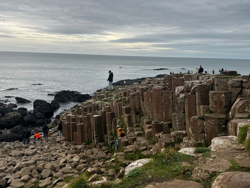 Now after a quick bite of lunch, we’re off to our final destination of Giants Causeway. The Giant’s Causeway (Irish: Clochán an Aifir) is an area of approximately 40,000 interlocking basalt columns, the result of an ancient volcanic fissure eruption. The tops of the columns form stepping stones that lead from the cliff foot and disappear under the sea. Most of the columns are hexagonal, although some have four, five, seven, or eight sides. The tallest are approximately 39 ft high, and the solidified lava in the cliffs is 92 ft thick in places.