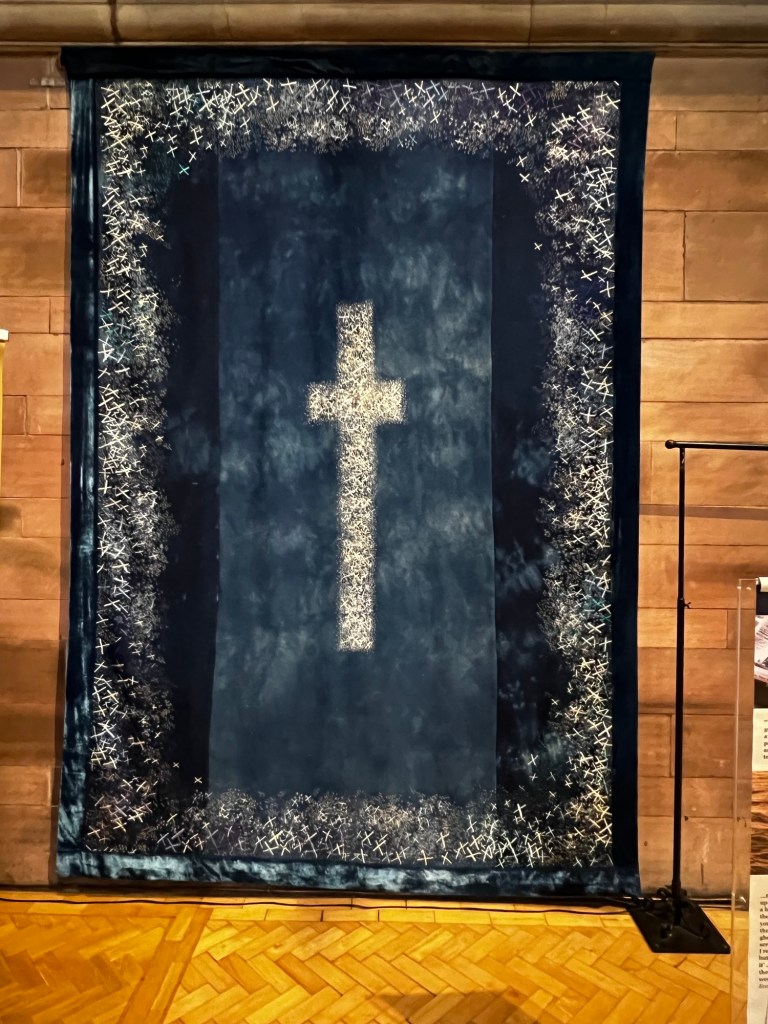 The Titanic Pall, in the opposite side of the Nave U.S. is dedicated to the 1517 souls who perished. It was dedicated on the 100th anniversary of the disaster April, 1912). Each of the gold crosses on the Pall commemorates someone who died.