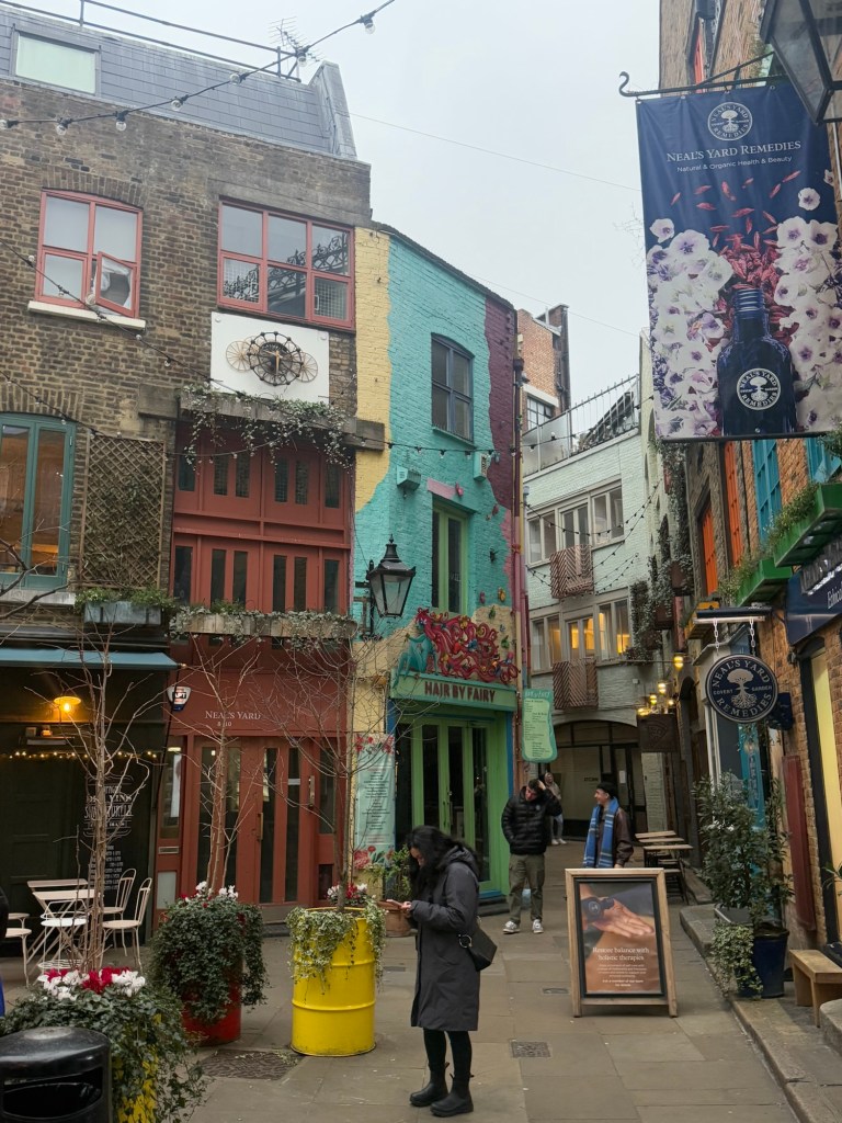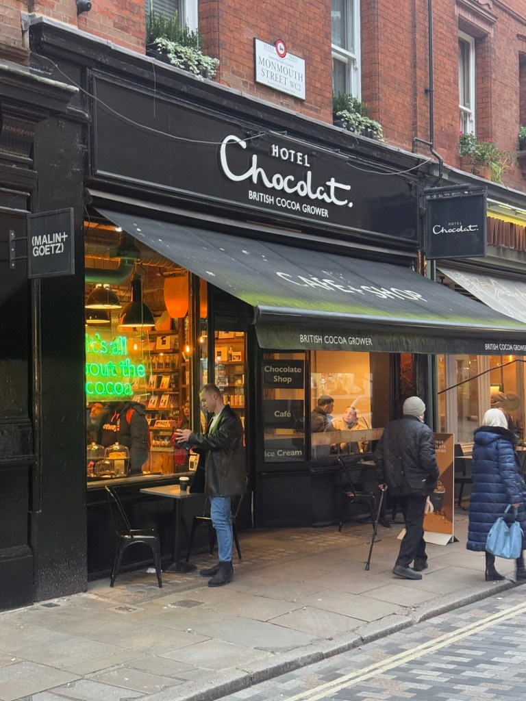 Nearby is Neal’s Yard and sooo many restaurants, small shops and coffee shops and the Hotel Chocolat.