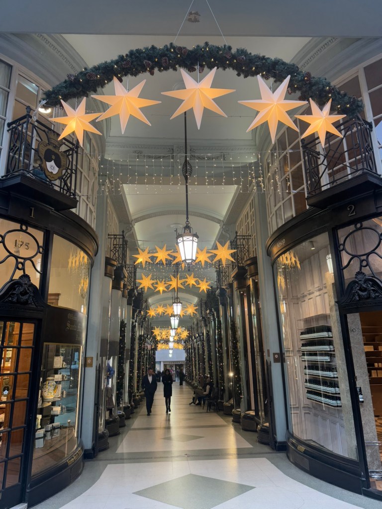 Burlington ( is one of the precursors of the mid-19th-century European shopping gallery and the world’s first modern shopping mall) and Piccadilly arcades are across from each other and nearby Fortnum & Mason.