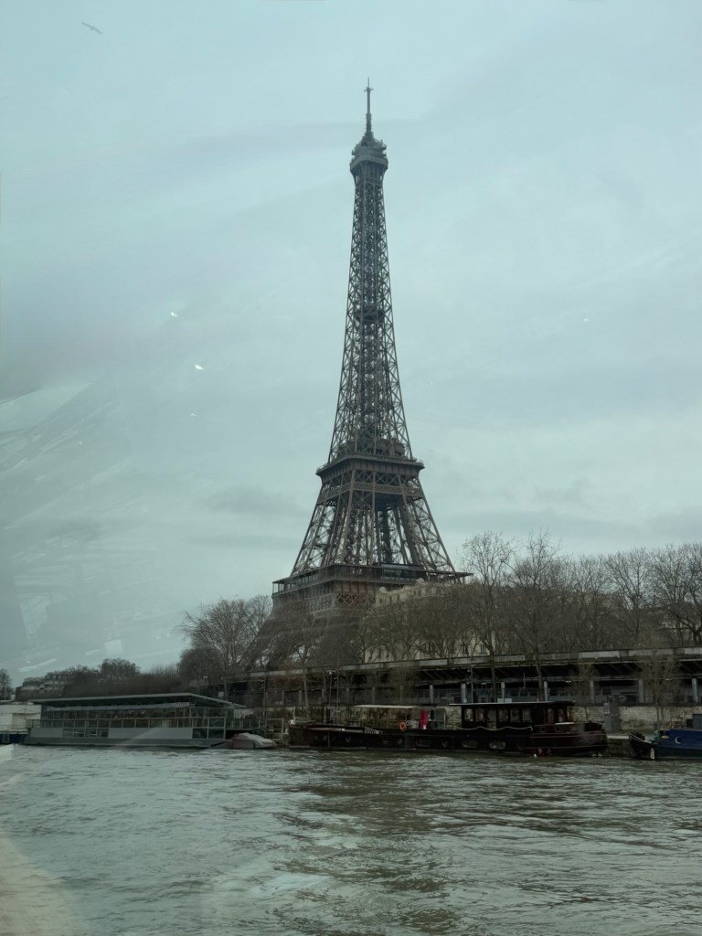 Many years ago a French friend treated us to a dinner cruise down the Seine and we decided to spring for a lunch cruise. This line, BateauxParisians leaves from a dock on the same side of the river as the Eiffel Tower. As cold as it is (and having visited the Eiffel Tower before), that’s not on the agenda while here.
