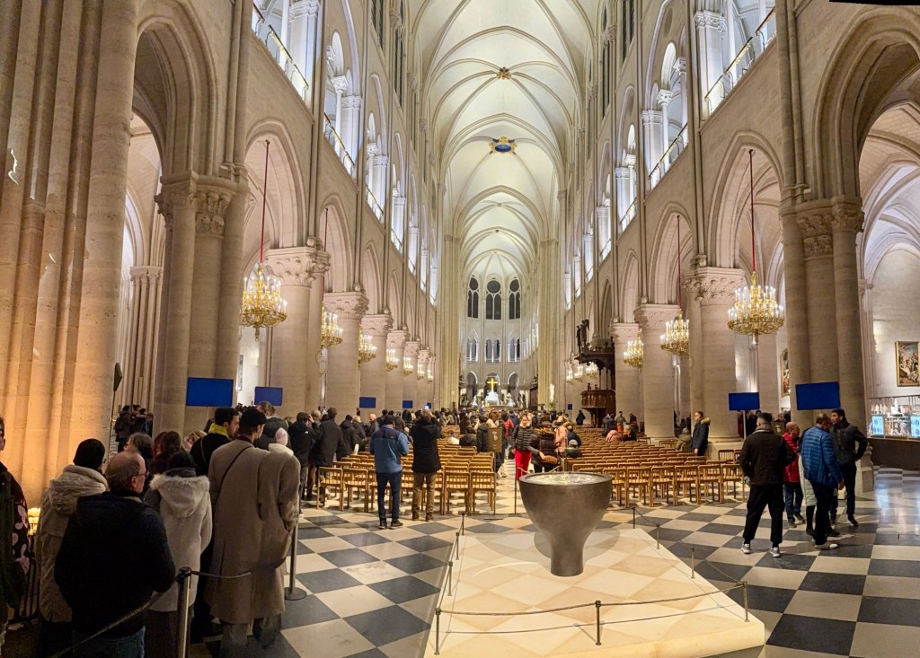 We spent about an hour inside, just completely in awe of the restoration work of so many craftsmen who came together to restore an international treasure. It’s mind boggling to appreciate the project management required to coordinate the removal of dangerous materials (principally lead) , prevent the total collapse after the fire, gather and preserve the precious relics, and coordinate the trades and materials necessary to restore the Cathedral to as close to its prior state as possible, in just five years. One visit won’t allow us to appreciate the “new” Notre-Dame.