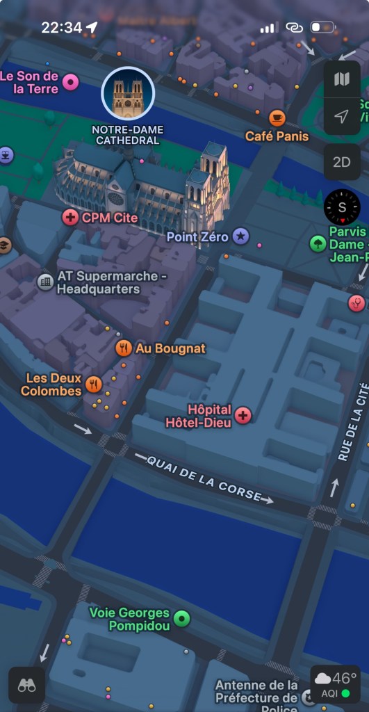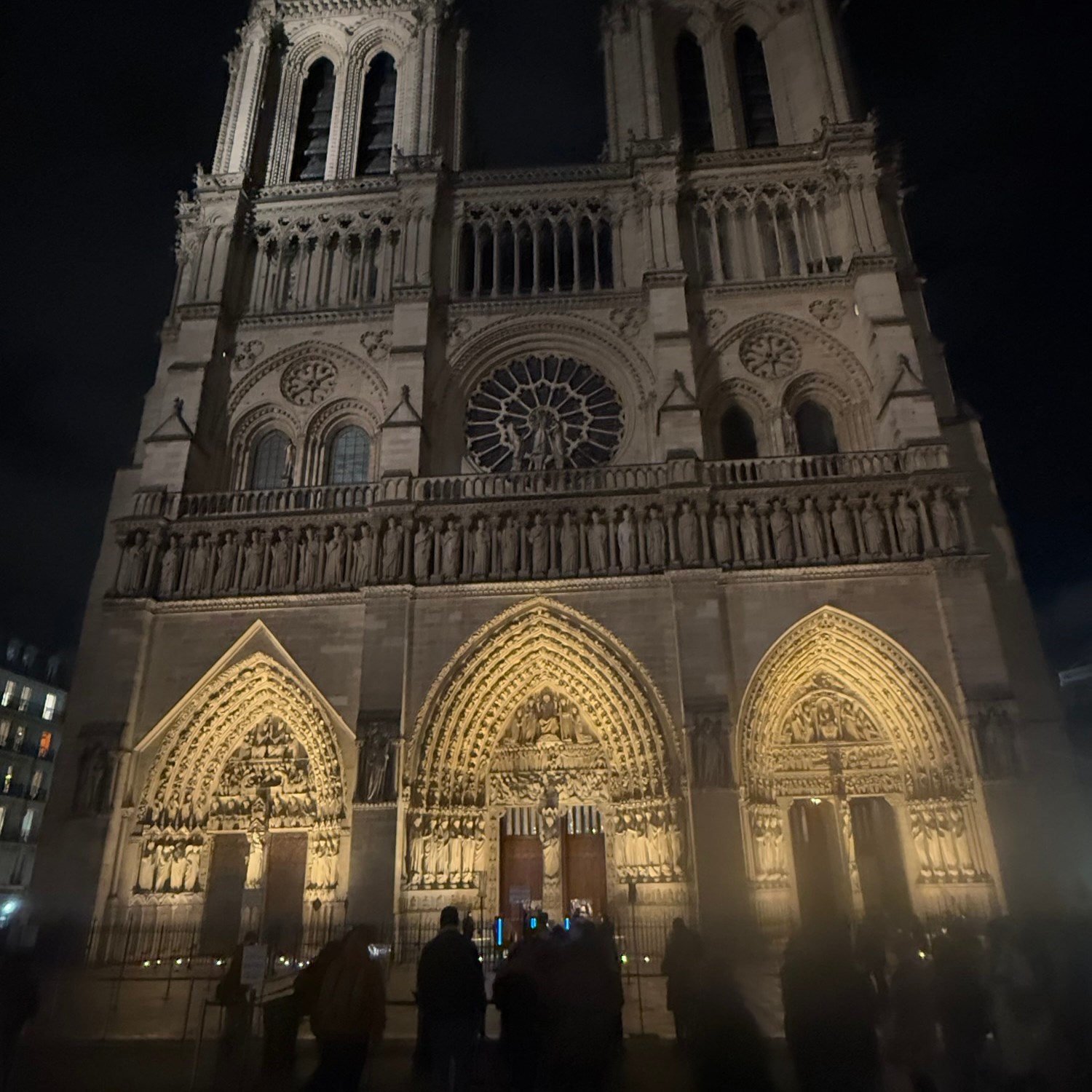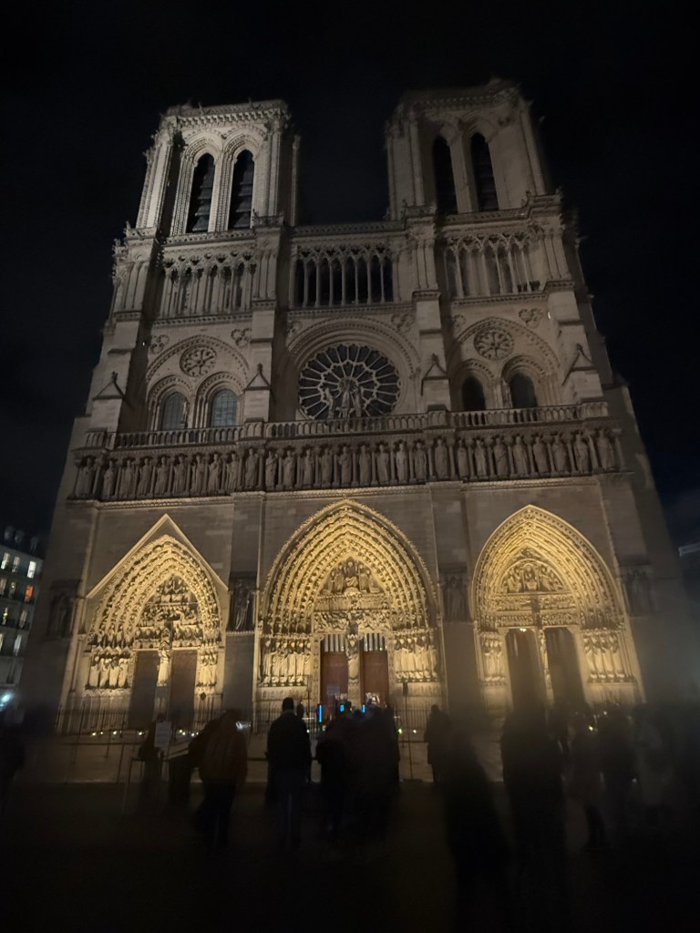 I won’t revisit the tragic events that nearly brought the Cathedral to complete ruin in 2019 , but the Cathedral has been under a massive restoration for the past five years and just reopened for Christmas service in December, 2024. Construction of Notre-Dame began in 1163 on Île de la Cité, under the reign of King Louis VII, and the cathedral was largely completed by 1345. Although the exterior restorations are not complete (still some cranes and scaffolding on the sides) , the reopening has allowed visitors to appreciate stunning restorations. We came to view the progress in 2022 and 2023, but the exterior was completely enclosed either with scaffolding or construction walls that obscured the work.